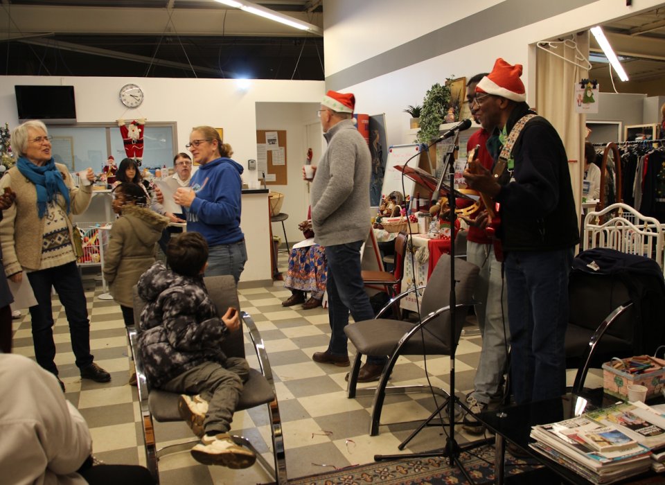 Dès 14 heures, ils se pressaient à la porte du local : enfants et parents étaient impatients de venir découvrir les cadeaux sous le sapin. Et le Père Noël a dû se démener pour faire plaisir aux 56 bambins venus participer à cette fête qui leur était dédiée ! Les yeux brillants de plaisir et le sourire aux lèvres, ils ont déballé leurs présents avec impatience. La journée s’est poursuivie par une animation musicale orchestrée par Etienne et sa guitare. Tout le monde a repris en chœur les refrains des chants traditionnels ainsi que des « tubes » à la mode. Puis, on s’est rassemblé autour du buffet rempli d’une montagne de gourmandises préparées par les bénévoles. Pour se réchauffer, s’il en était besoin, il fallait aussi déguster le fameux chocolat chaud créole (sans alcool !) savamment concocté par Valérie. La journée s’est prolongée : l’ambiance était si chaleureuse que personne n’avait envie de repartir. Un grand merci aux bénévoles qui ont organisé cette fête et à l’Espace France Service qui a récolté de nombreux cadeaux au profit des enfants et petits-enfants des bénéficiaires. En ce temps de l’Avent, la générosité s’est manifestée avec bonheur et spontanéité de la part de tous les donateurs pour la plus grande joie des petits